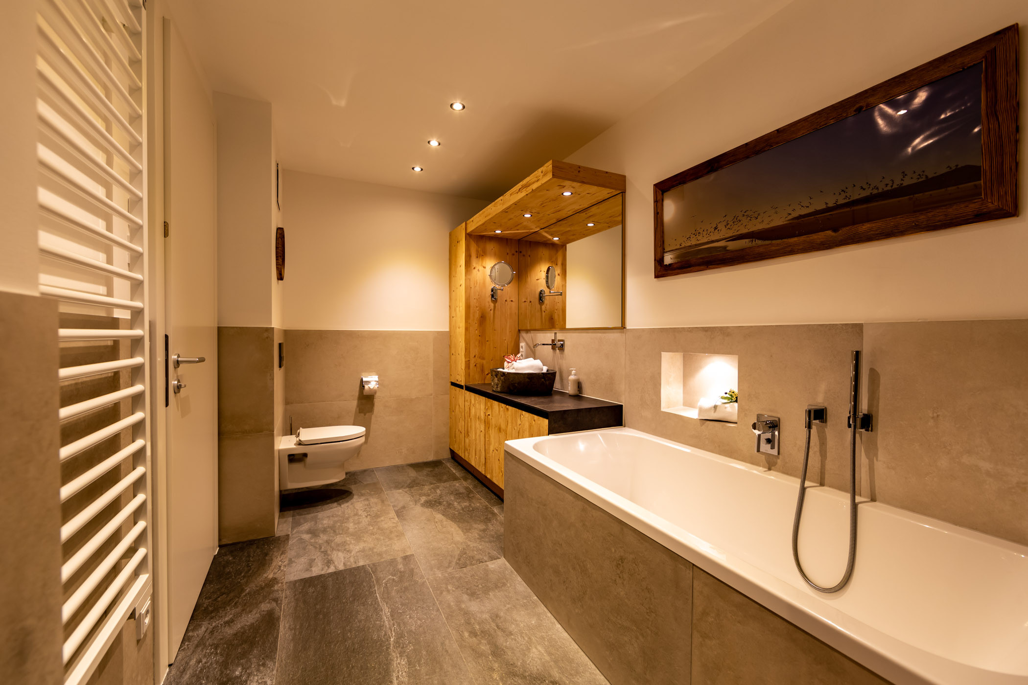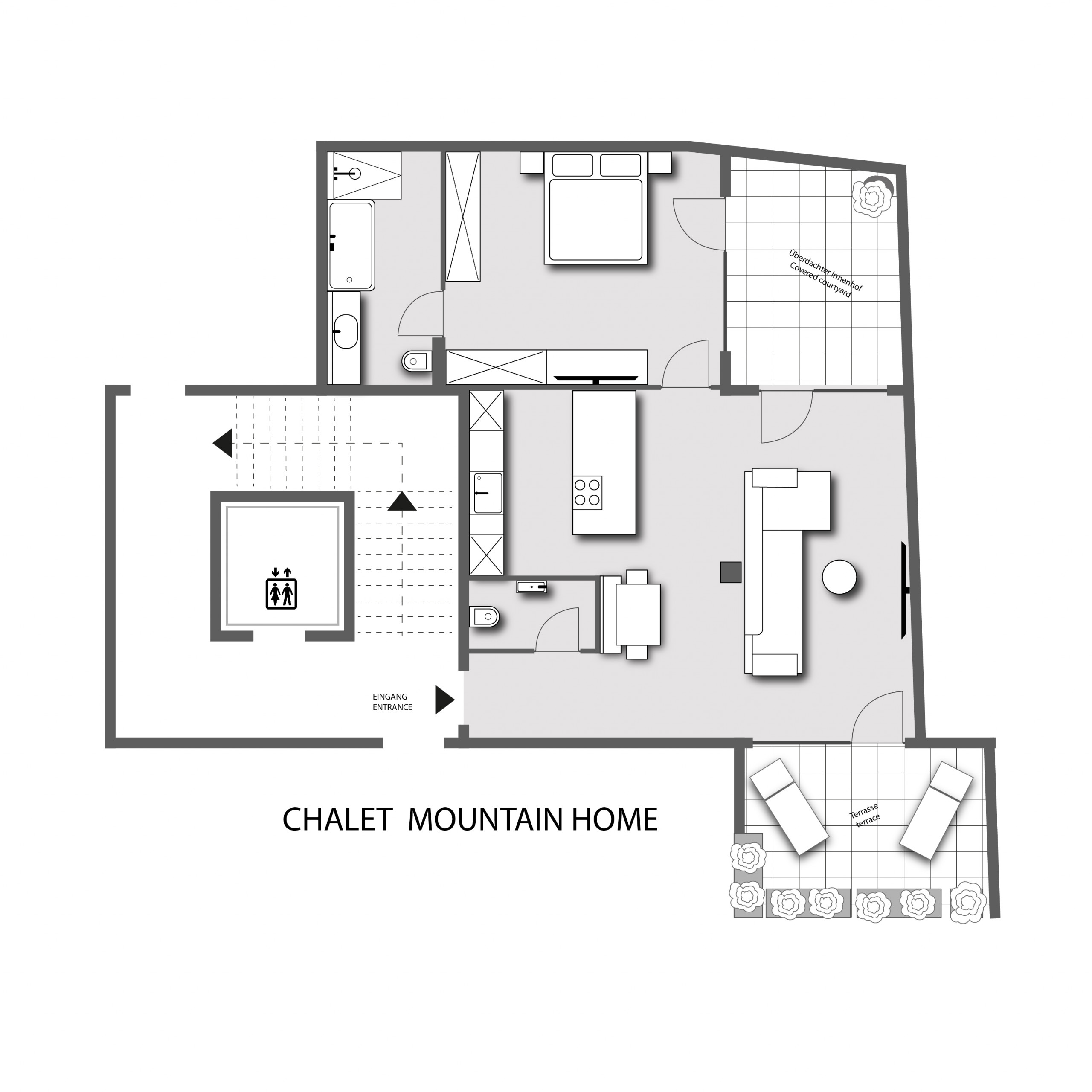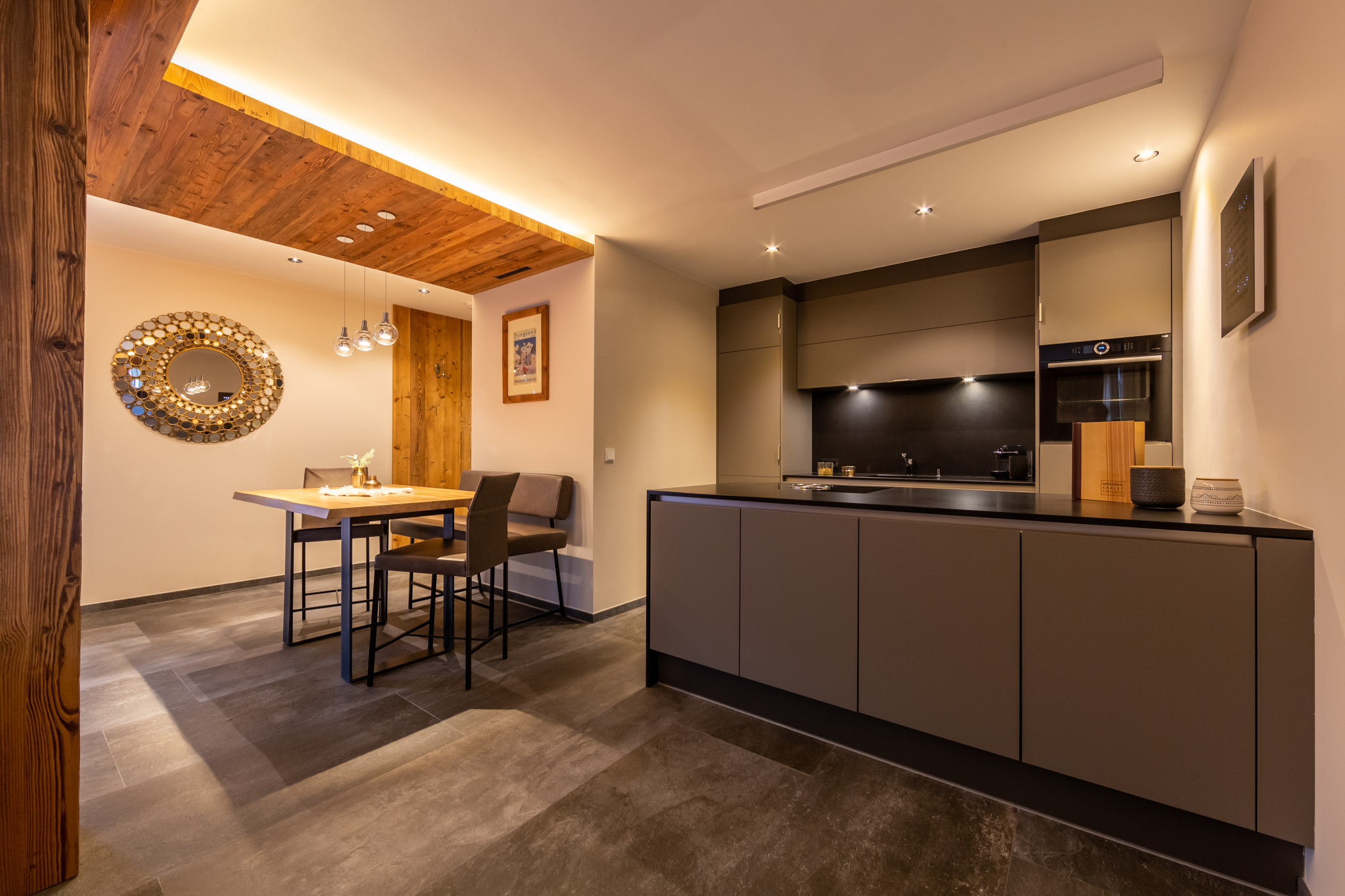 The apartments combine quality and comfort at the highest level. They provide space for two to six people and are equipped with high-quality materials and modern design. Large window fronts flood the rooms with light and offer a breathtaking view of the surrounding mountain landscape. The modern fully equipped kitchens and high-quality beds ensure an exclusive living experience and restful nights.