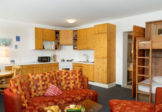 The Grünberg 144 vacation apartment offers space for up to four people. A cozy bedroom with a double bed and a living area with a bunk bed provide plenty of sleeping space. Meals can be prepared together in the well-equipped kitchen. The bathroom is equipped with a bathtub and rounds off the comfort of the apartment. A special highlight is the garden, which invites you to linger and relax and offers you a moment of peace in the midst of nature.