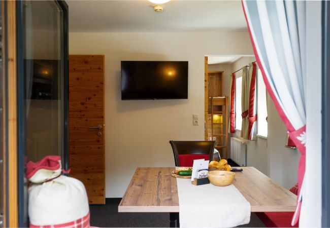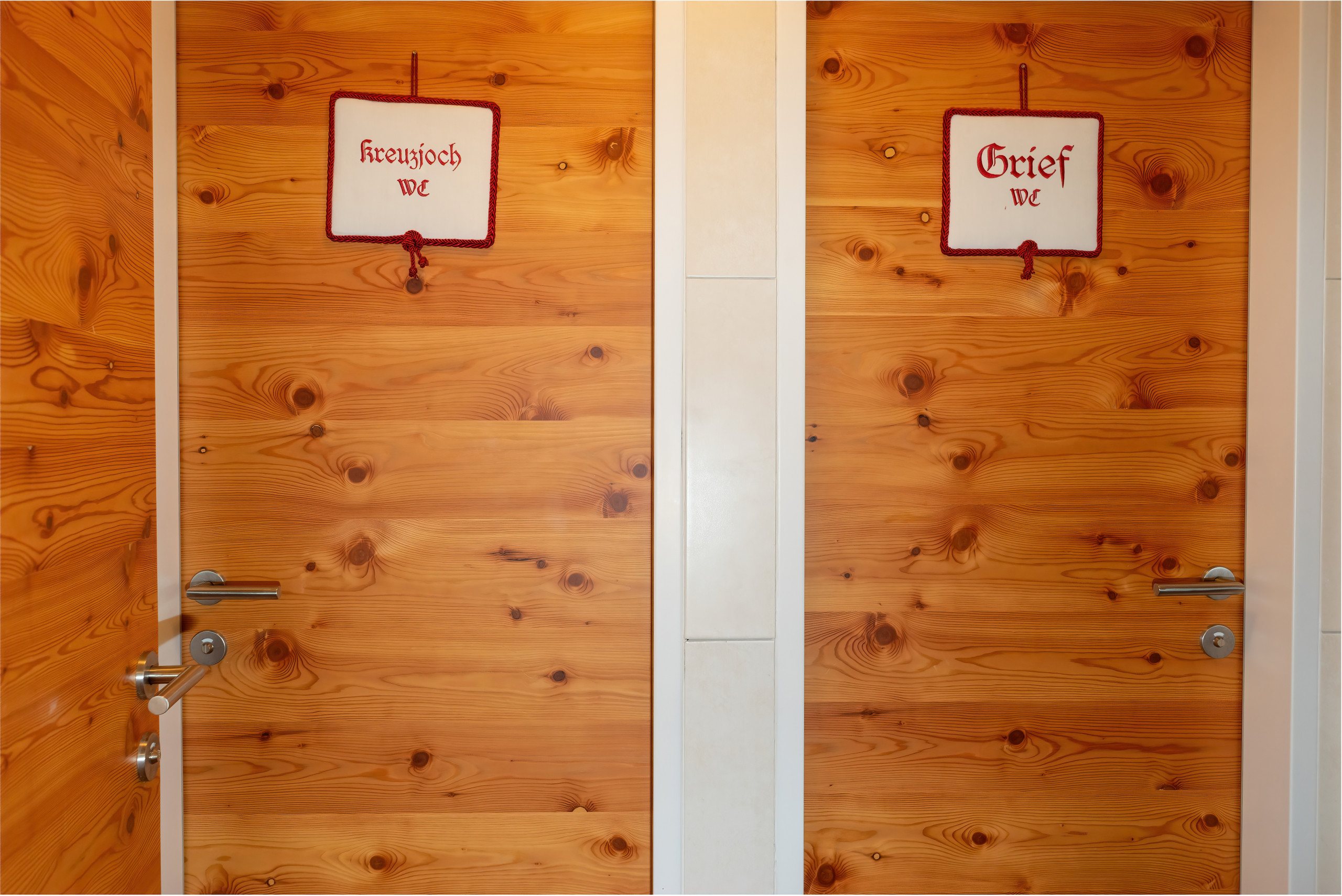 The Grief 143 vacation apartment is perfect for couples or solo travelers. It is ideal for self-catering and has a balcony with a panoramic view of the surrounding mountains. The apartment is one of two that does not have its own bathroom - this is located in a shared room in the corridor, but each apartment is allocated its own area with WC, shower and washing facilities. The rustic hut flair creates an authentic mountain atmosphere that will make your stay unforgettable.