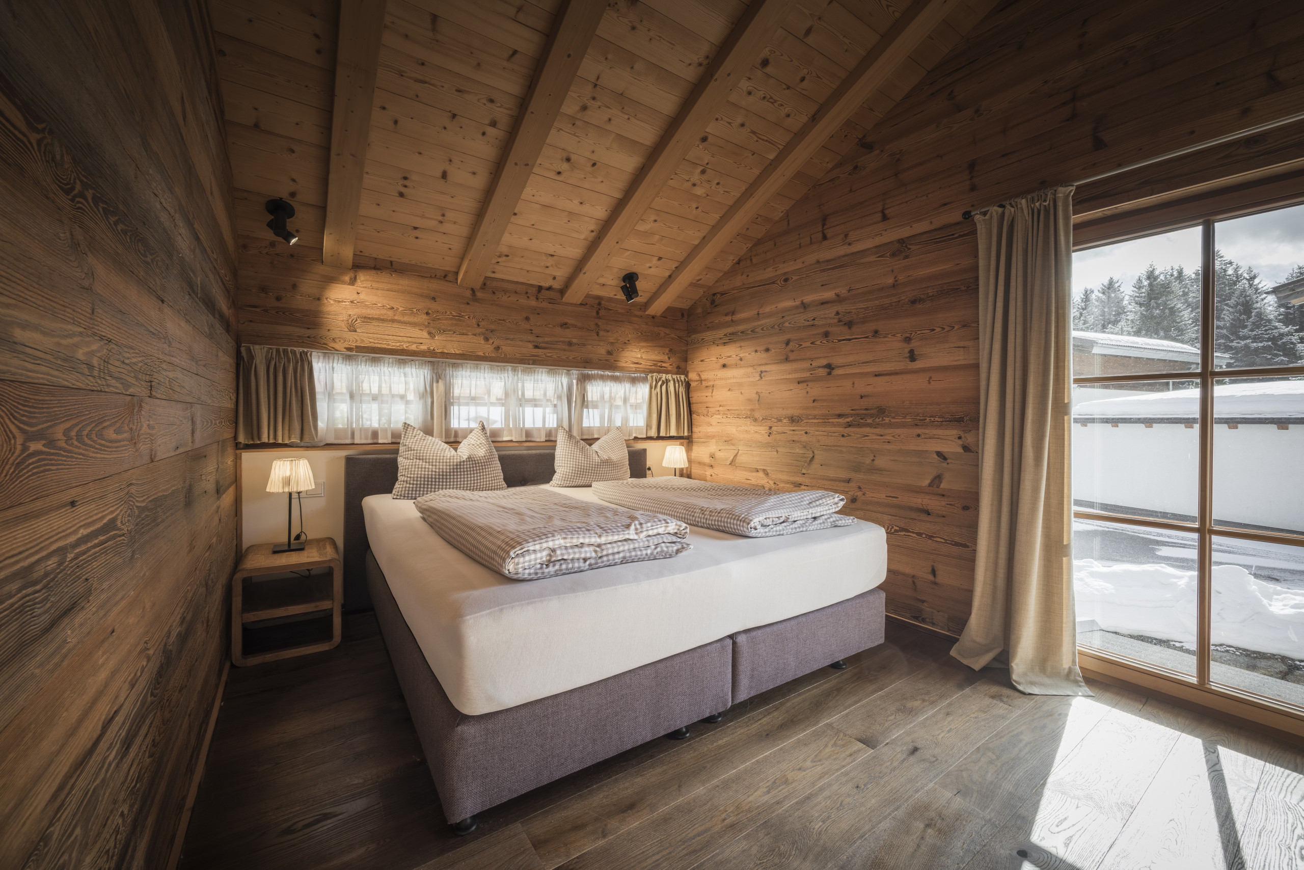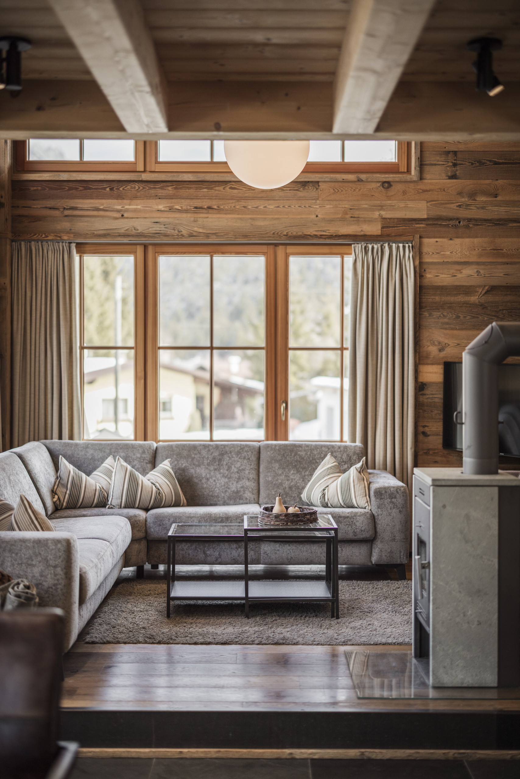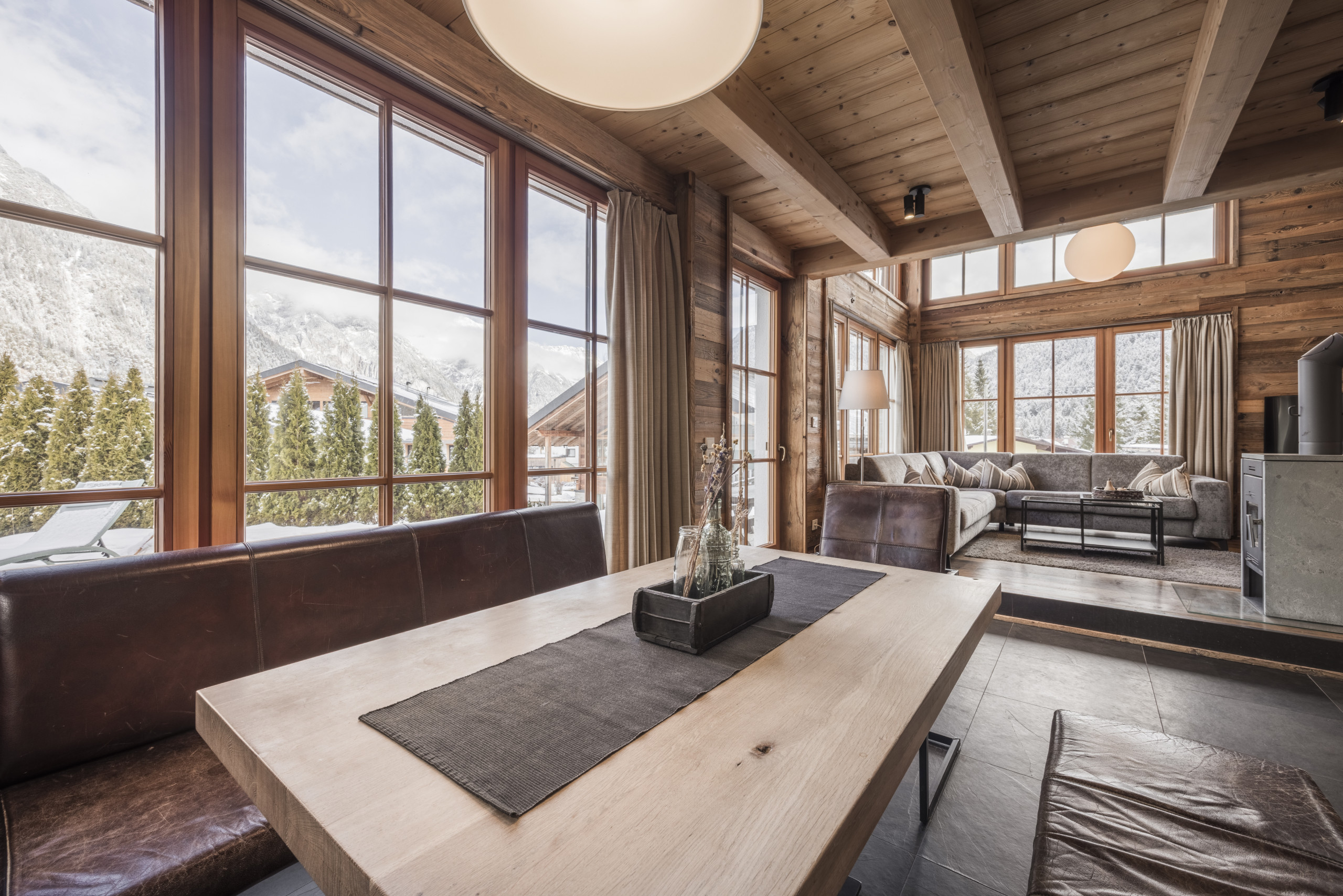Each of the five luxurious chalets is stylishly furnished with natural, local materials, creating a harmonious combination of traditional Alpine charm and modern comfort. The spacious panoramic windows in the living area, which extend to the upper floor, allow you to enjoy the spectacular mountain scenery from inside the chalet.