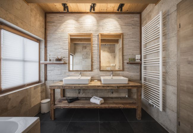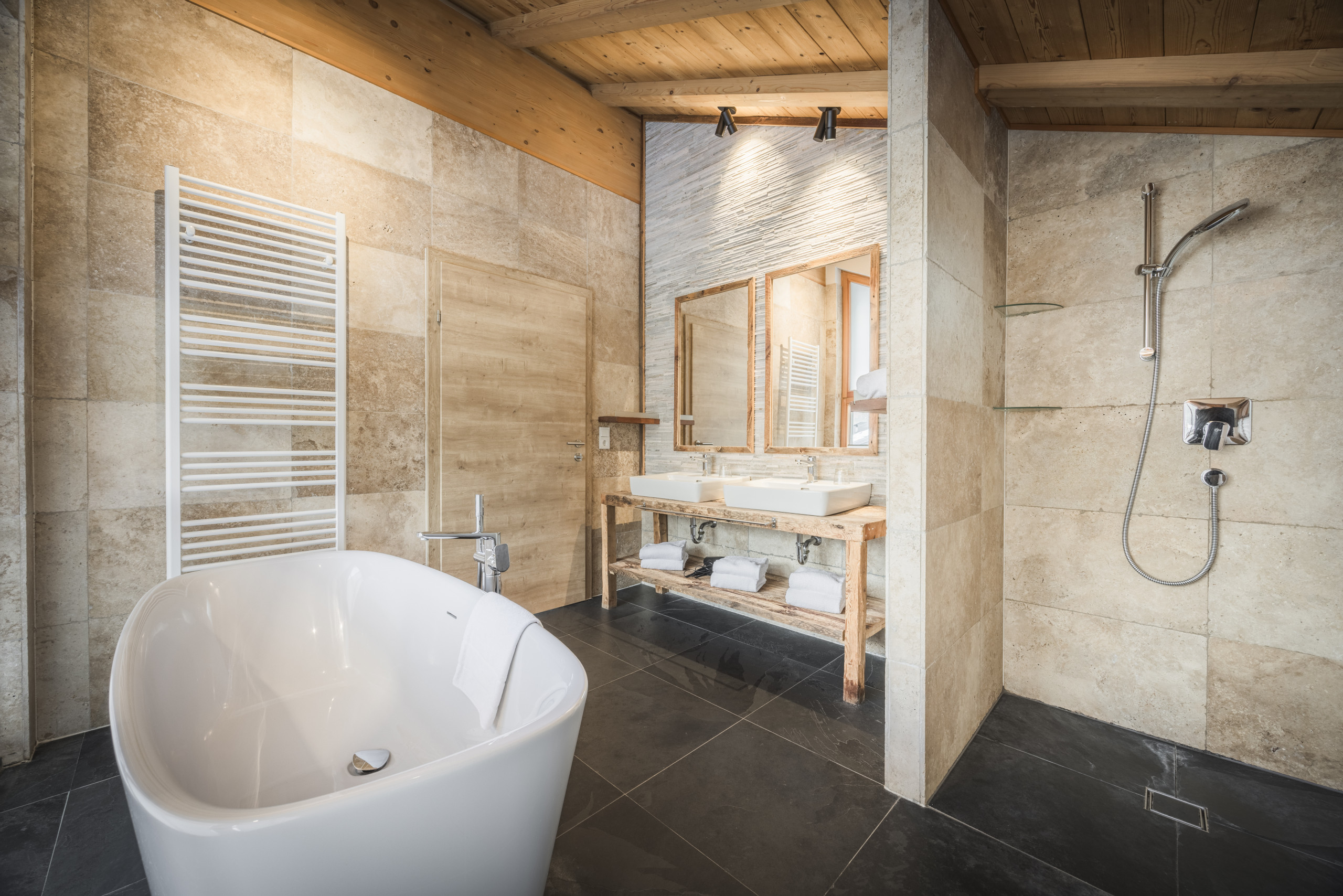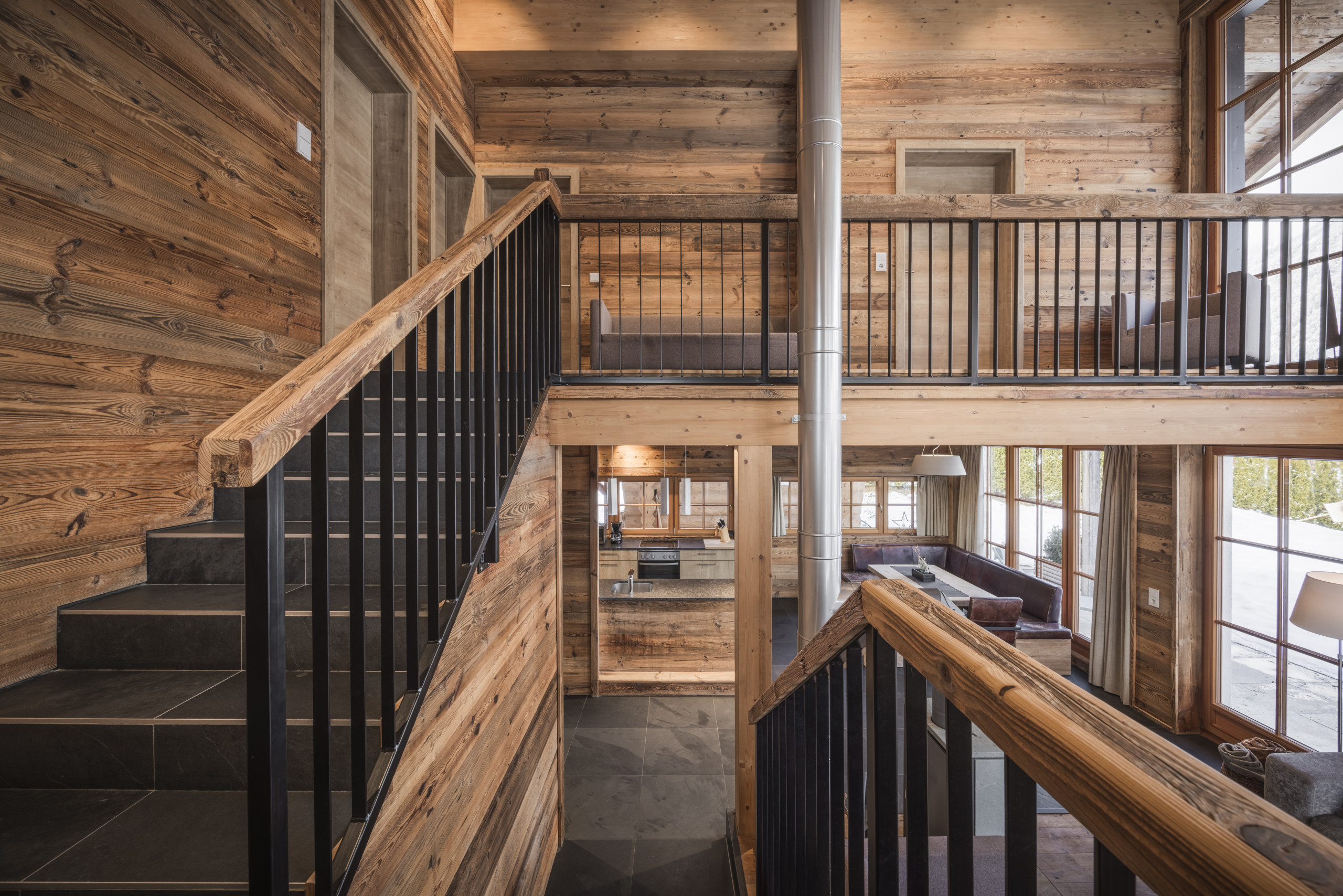 Each of the five luxurious chalets is stylishly furnished with natural, local materials, creating a harmonious combination of traditional Alpine charm and modern comfort. The spacious panoramic windows in the living area, which extend to the upper floor, allow you to enjoy the spectacular mountain scenery from inside the chalet.
