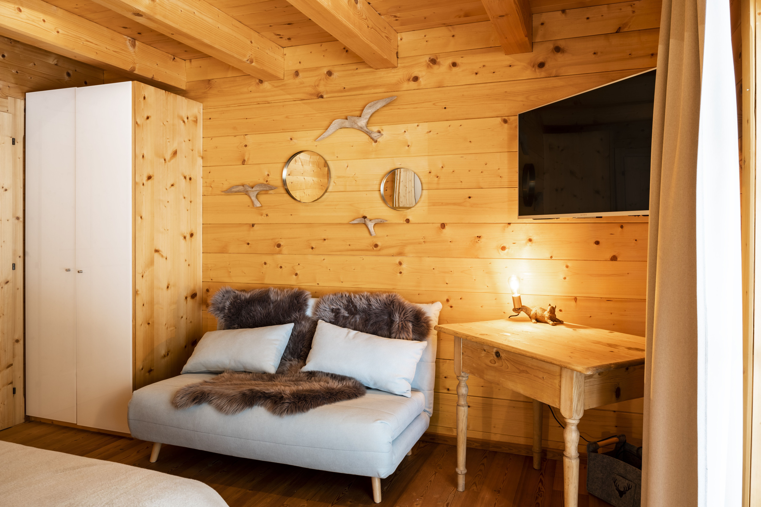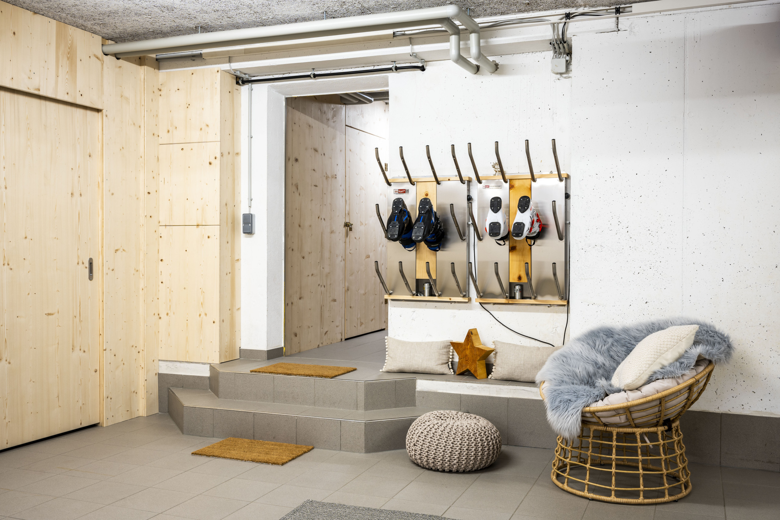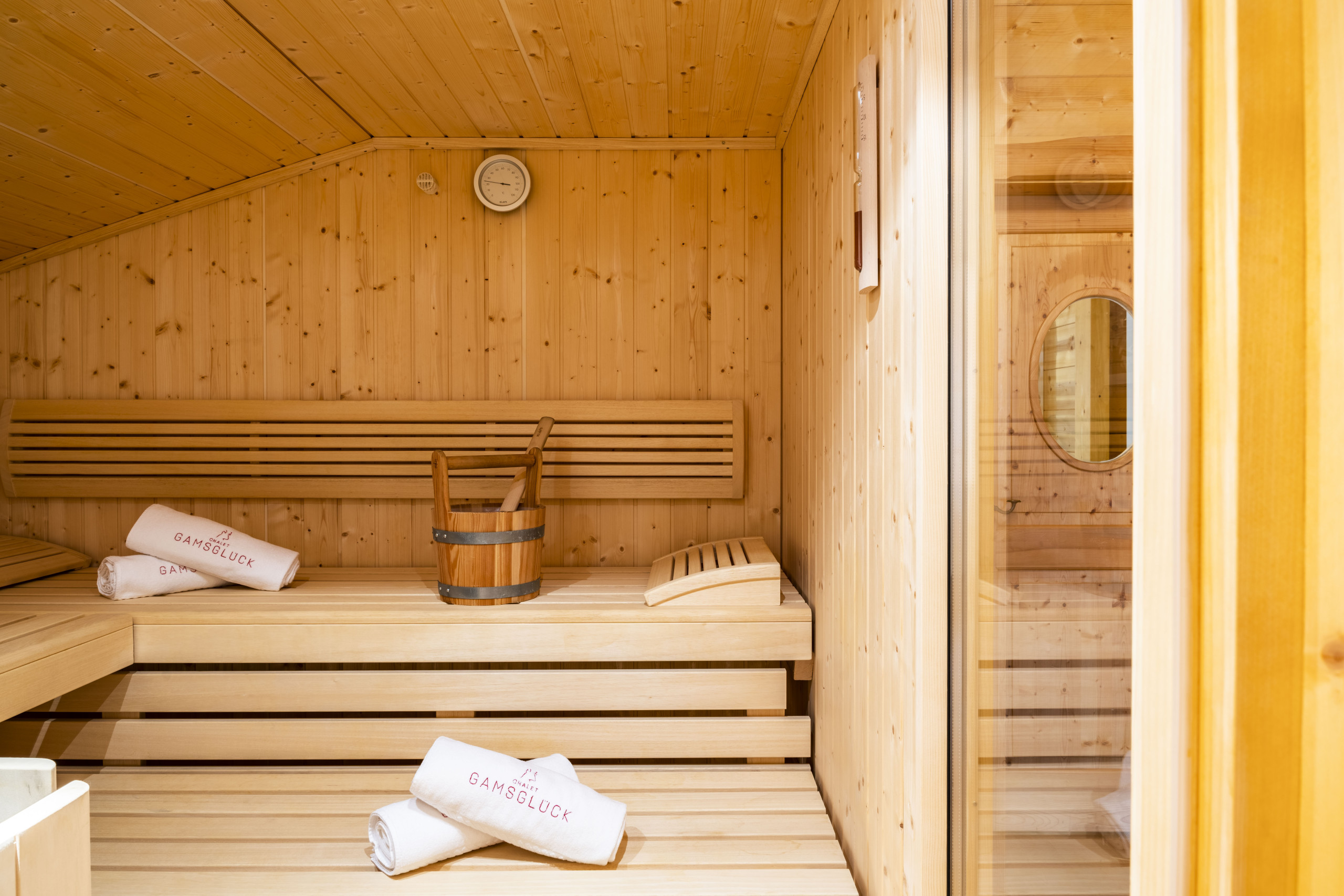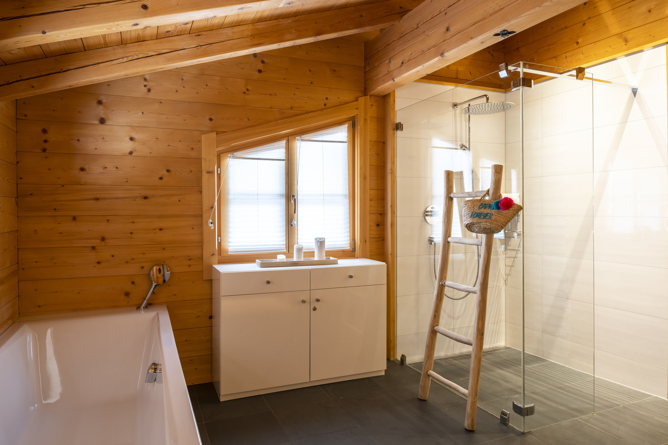 The in-house sauna on the upper floor ensures absolute relaxation after an active day in the mountains. The spacious garden is another highlight of the chalet: in summer, guests can enjoy the heated outdoor pool (5x10 metres), while sun loungers, lounge furniture and cosy seating areas invite you to relax. A pool house with a spacious terrace can also be found in the outdoor area.