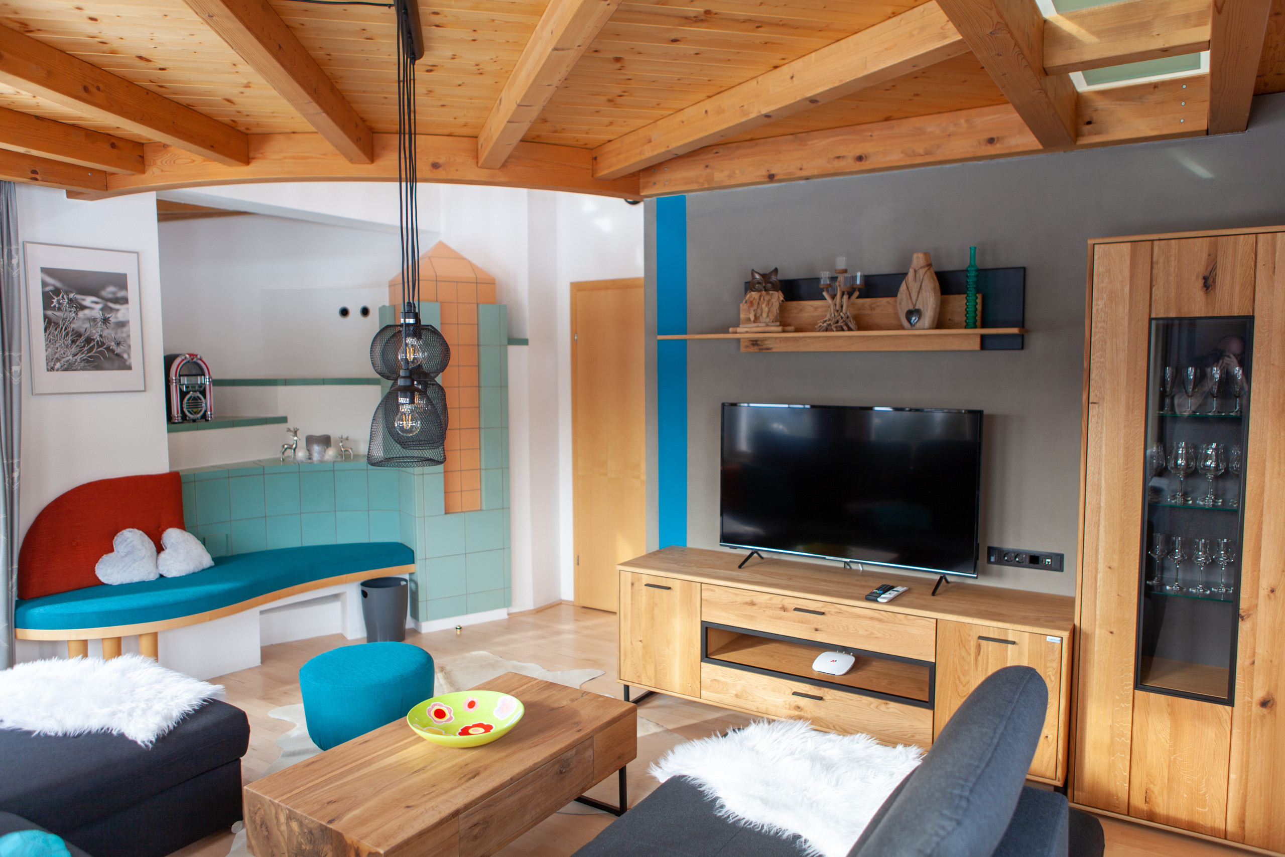 Die voll ausgestattete Küche lässt keine Wünsche offen und ist perfekt für einen Selbstversorger-Urlaub in den Bergen. Die gemütliche Sitzecke ist der ideale Ort, um bei einem gemeinsamen Koch- oder Spielabend Zeit miteinander zu verbringen. Ein weiteres Highlight des Hauses ist der Turm (Gallerie), der über das Wohnzimmer erreichbar ist und einen wunderschönen Panoramablick auf die atemberaubende Bergwelt bietet – der perfekte Ort, um die Seele baumeln zu lassen.