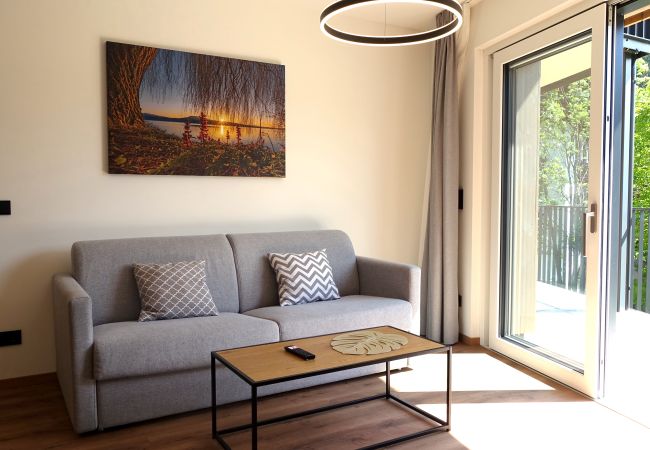 Alle Appartements sind stilvoll und hochwertig eingerichtet, mit einer perfekten Kombination aus traditionellem Charme und modernen Akzenten, die ein rundum gemütliches Wohnerlebnis schaffen. Der Wohn- und Essbereich mit einer voll ausgestatteten Küche bietet alles, was man braucht, inklusive eines ausziehbaren Sofas für zwei zusätzliche Personen und einem Flat-TV. Große Fenster und eine Balkontür lassen viel Licht in den Raum und sorgen für eine helle, einladende Atmosphäre. Der gemütliche Balkon mit Sitzgelegenheiten und kleinem Beistelltisch ist sowohl vom Wohnbereich als auch von einem der Schlafzimmer aus zugänglich. Auf eigenen Parkplätzen direkt vor dem Haus, können die PKWs unserer Gäste abgestellt werden.